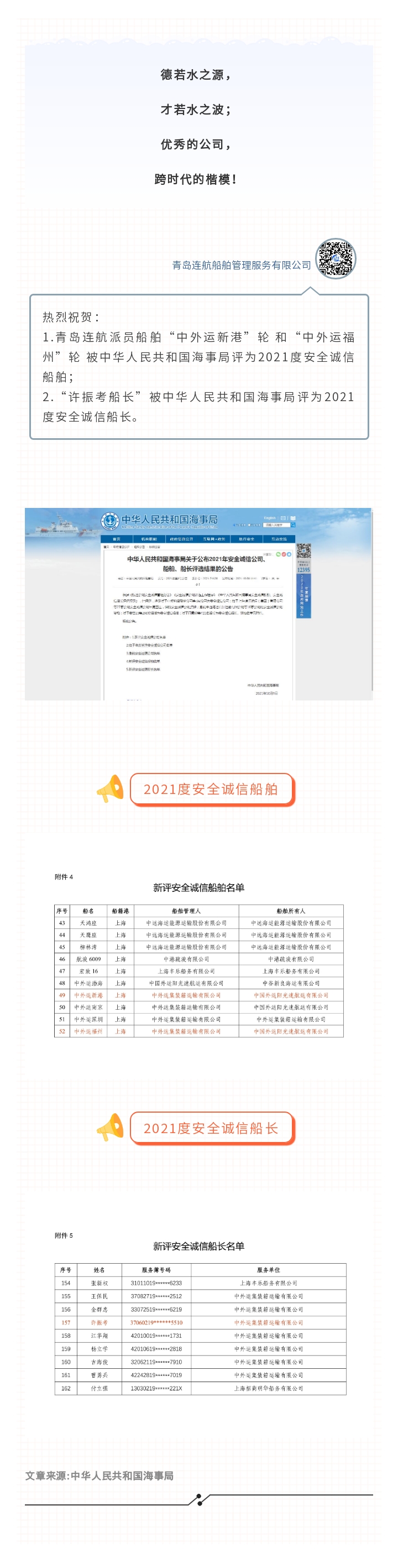 2021年安全誠信公司、船舶、船長評選結(jié)果公布